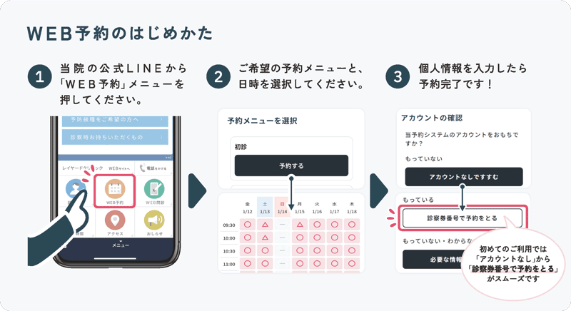 当院ではWEB予約をご利用いただけます。(直接来院でも診察が可能です)