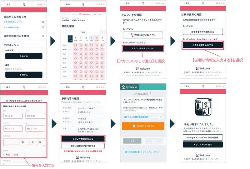 - お電話で予約されたあと、WEB問診の記入をお願いいたします。